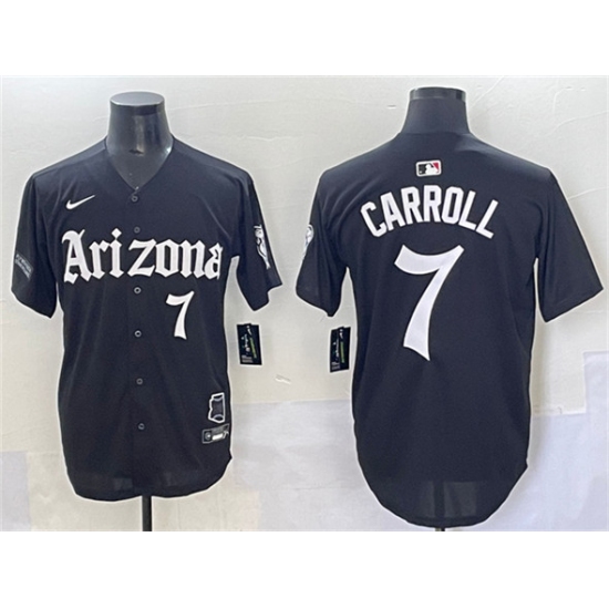 >Men's Arizona Diamondbacks #7 Corbin Carroll Black 'Gothic Desert Fang Edition' Vapor Limited Stitched Baseball Jersey