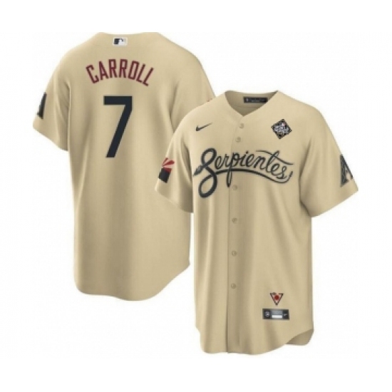Men's Arizona Diamondbacks #7 Corbin Carroll Gold 2023 World Series City Connect Cool Base Stitched Baseball Jersey