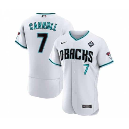 Men's Arizona Diamondbacks #7 Corbin Carroll White 2023 World Series Flex Base Stitched Jersey