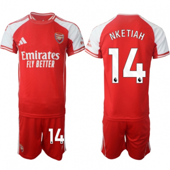 >Men's Arsenal F.C #14 Eddie Nketiah Red 2025 Home Soccer Jersey Suit