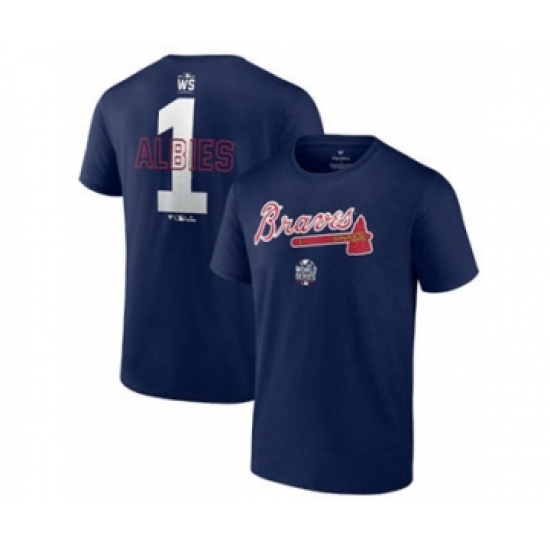 Men's Atlanta Braves #1 Ozzie Albies 2021 Navy World Series Bound Closer Name & Number Baseball T-Shirt