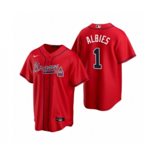 Men's Atlanta Braves #1 Ozzie Albies Nike Red 2020 Replica Alternate Jersey