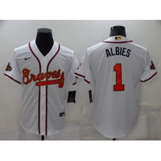 Men's Atlanta Braves #1 Ozzie Albies Nike White 2022 Gold Program Authentic Player Jersey