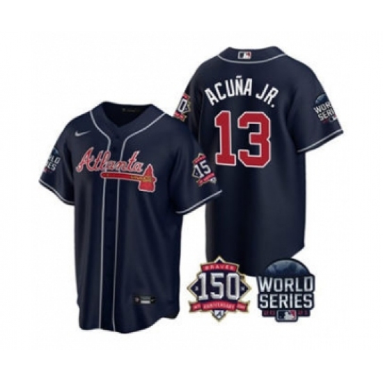Men's Atlanta Braves #13 Ronald Acuna Jr. 2021 Navy World Series With 150th Anniversary Patch Cool Base Baseball Jersey