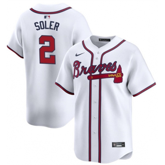 Men's Atlanta Braves #2 Jorge Soler White 2024 Home Limited Stitched Baseball Jersey