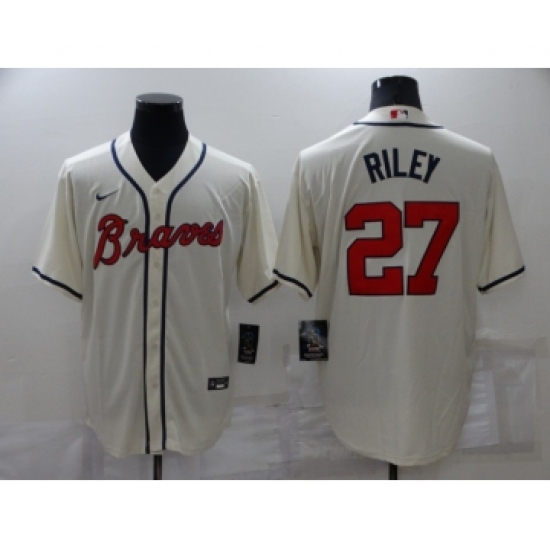>Men's Atlanta Braves #27 Austin Riley Cream Stitched MLB Cool Base Nike Jersey