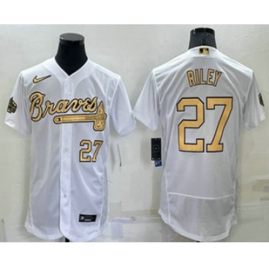 Men's Atlanta Braves #27 Austin Riley Number White 2022 All Star Stitched Flex Base Nike Jersey