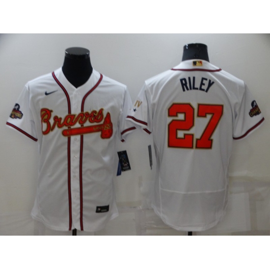 Men's Atlanta Braves #27 Austin Riley White 2022 Gold Program Authentic Player Jersey