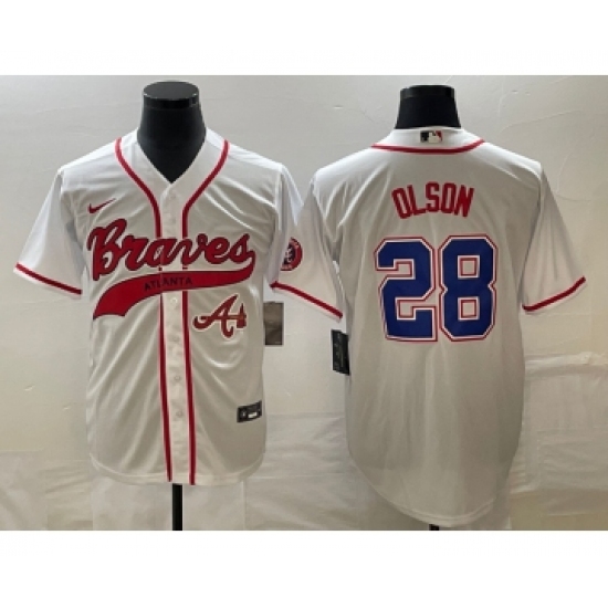 Men's Atlanta Braves #28 Matt Olson White Cool Base Stitched Baseball Jersey1