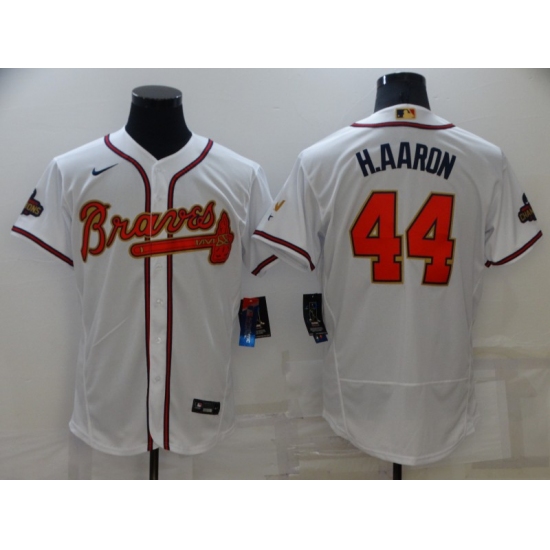 Men's Atlanta Braves #44 Hank Aaron White 2022 Gold Program Authentic Player Jersey