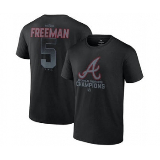Men's Atlanta Braves #5 Freddie Freeman Black 2021 World Series Champions Name & Number T-Shirt