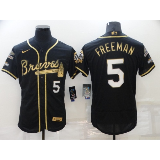 Men's Atlanta Braves #5 Freddie Freeman Black Gold 2021 World Series Champions Stitched Jersey