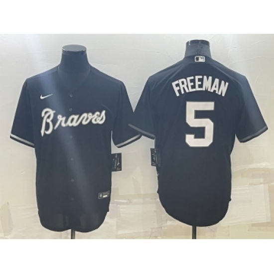 >Men's Atlanta Braves #5 Freddie Freeman Black Turn Back The Clock Stitched Cool Base Jersey