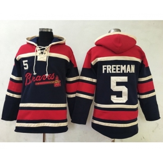 Men's Atlanta Braves #5 Freddie Freeman Navy Blue Stitched MLB Baseball Hoodie