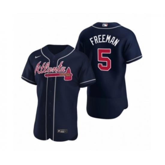 >Men's Atlanta Braves #5 Freddie Freeman Nike Navy Authentic 2020 Alternate Jersey