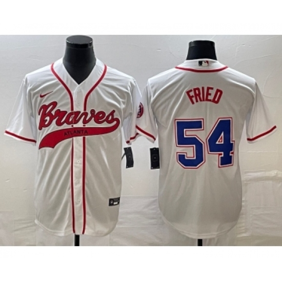 >Men's Atlanta Braves #54 Max Fried White Cool Base Stitched Baseball Jersey1