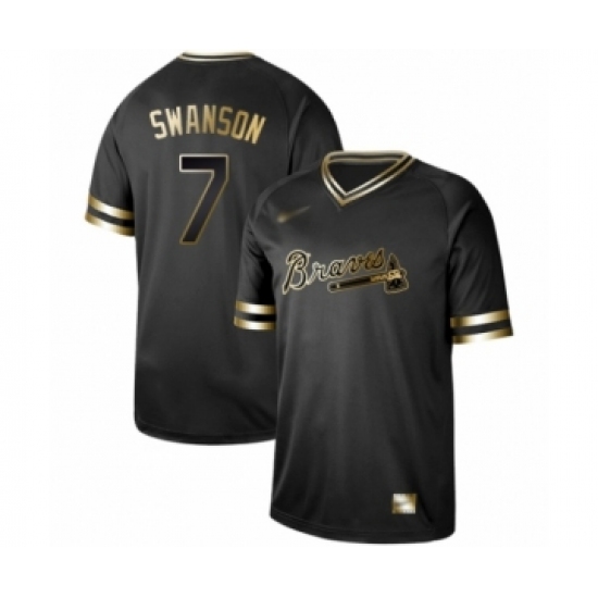 >Men's Atlanta Braves #7 Dansby Swanson Authentic Black Gold Fashion Baseball Jersey
