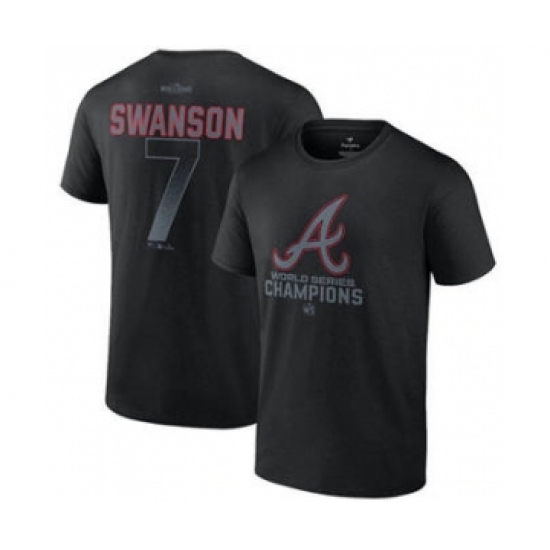 Men's Atlanta Braves #7 Dansby Swanson Black 2021 World Series Champions Name & Number T-Shirt