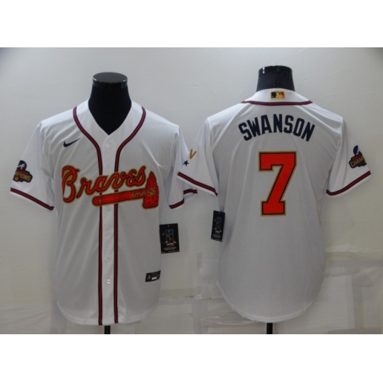 >Men's Atlanta Braves #7 Dansby Swanson Nike White 2022 Gold Program Authentic Player Jersey