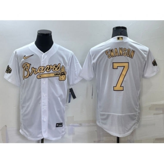 Men's Atlanta Braves #7 Dansby Swanson White 2022 All Star Stitched Flex Base Nike Jersey