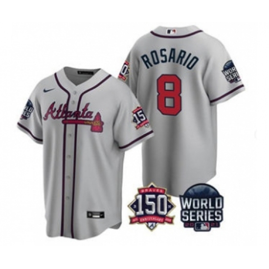 Men's Atlanta Braves #8 Eddie Rosario 2021 Gray World Series With 150th Anniversary Patch Cool Base Stitched Jersey
