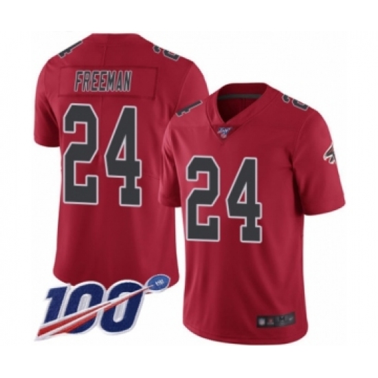 >Men's Atlanta Falcons #24 Devonta Freeman Limited Red Rush Vapor Untouchable 100th Season Football Jersey