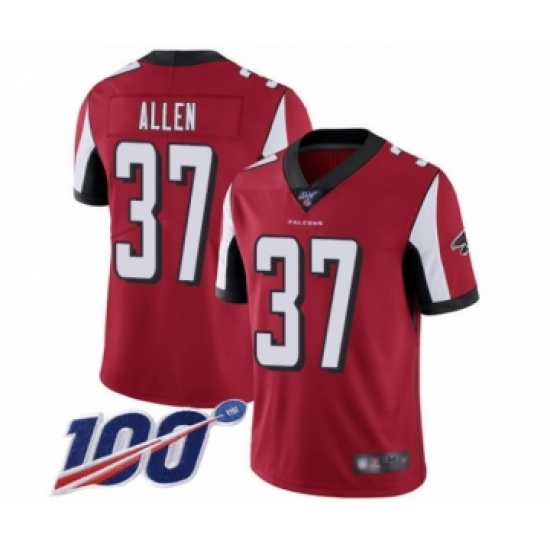 >Men's Atlanta Falcons #37 Ricardo Allen Red Team Color Vapor Untouchable Limited Player 100th Season Football Jersey