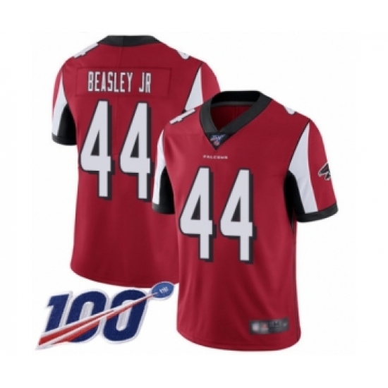 >Men's Atlanta Falcons #44 Vic Beasley Red Team Color Vapor Untouchable Limited Player 100th Season Football Jersey
