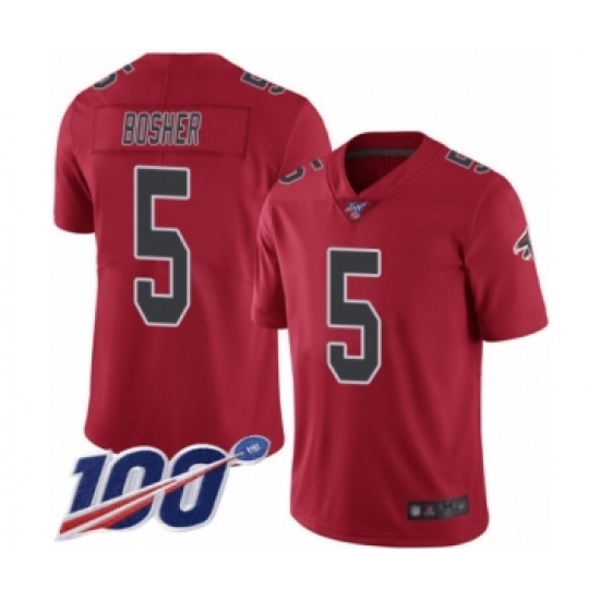 >Men's Atlanta Falcons #5 Matt Bosher Limited Red Rush Vapor Untouchable 100th Season Football Jersey