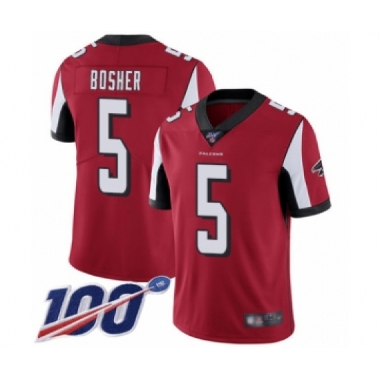 >Men's Atlanta Falcons #5 Matt Bosher Red Team Color Vapor Untouchable Limited Player 100th Season Football Jersey