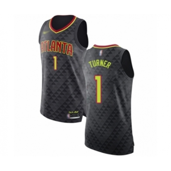 >Men's Atlanta Hawks #1 Evan Turner Authentic Black Basketball Jersey - Icon Edition