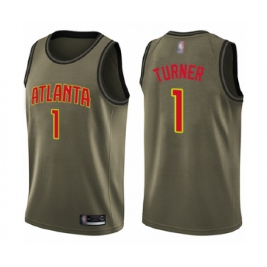 Men's Atlanta Hawks #1 Evan Turner Swingman Green Salute to Service Basketball Jersey