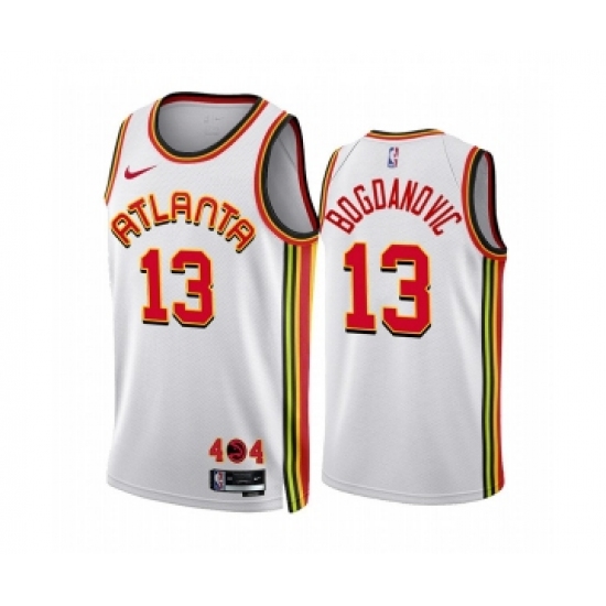 >Men's Atlanta Hawks #13 Bogdan Bogdanovic 2022-23 White Association Edition Stitched Jersey