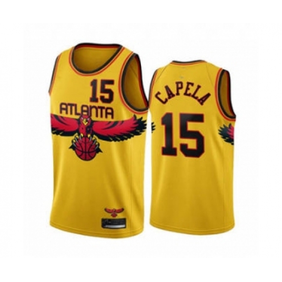 >Men's Atlanta Hawks #15 Clint Capela 2021-2022 Yellow City Edition Stitched Basketball Jersey