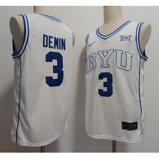 Men's BYU Cougars #3 Egor Demin White Stitched NCAA Basketball Jersey