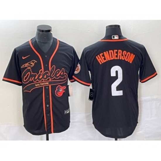 >Men's Baltimore Orioles #2 Gunnar Henderson Black With Patch Cool Base Stitched Baseball Jersey