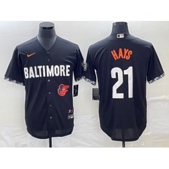 >Men's Baltimore Orioles #21 Austin Hays Black 2023 City Connect Cool Base Stitched Jersey 1