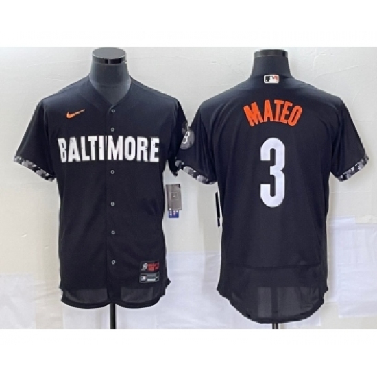 >Men's Baltimore Orioles #3 Jorge Mateo Black 2023 City Connect Flex Base Stitched Jersey