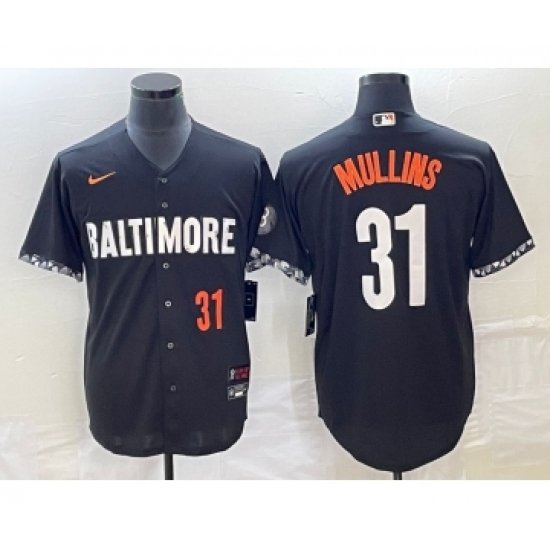 Men's Baltimore Orioles #31 Cedric Mullins Black 2023 City Connect Cool Base Stitched Jersey 1