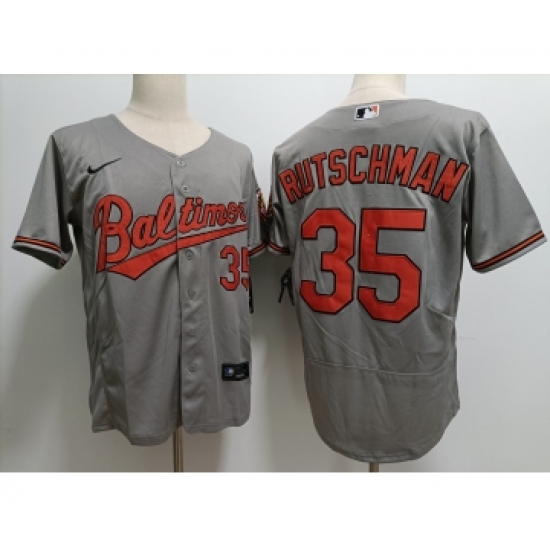 Men's Baltimore Orioles #35 Adley Rutschman Grey Stitched Flex Base Nike Jersey