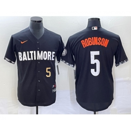 Men's Baltimore Orioles #5 Brooks Robinson Number Black 2023 City Connect Cool Base Stitched Jersey 1