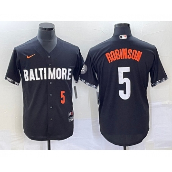 Men's Baltimore Orioles #5 Brooks Robinson Number Black 2023 City Connect Cool Base Stitched Jersey