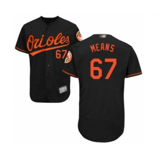 >Men's Baltimore Orioles #67 John Means Black Alternate Flex Base Authentic Collection Baseball Jersey