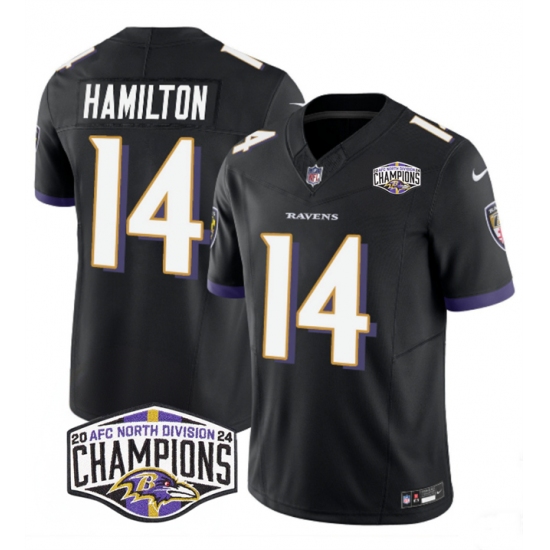 Men's Baltimore Ravens #14 Kyle Hamilton Black F.U.S.E 2024 AFC North Division Champions Vapor Limited Football Jersey