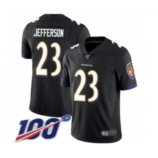 >Men's Baltimore Ravens #23 Tony Jefferson Black Alternate Vapor Untouchable Limited Player 100th Season Football Jersey