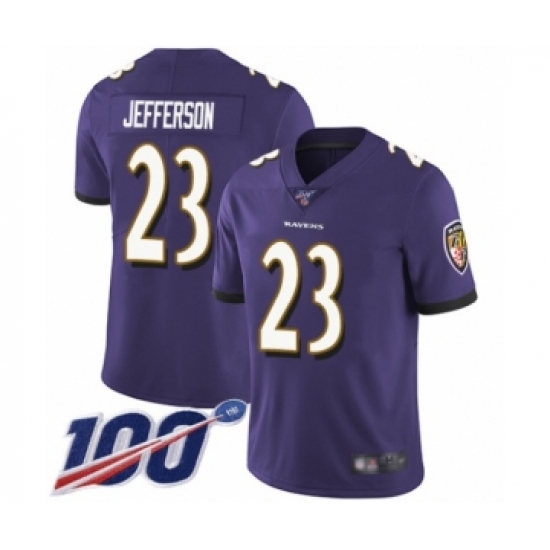Men's Baltimore Ravens #23 Tony Jefferson Purple Team Color Vapor Untouchable Limited Player 100th Season Football Jersey