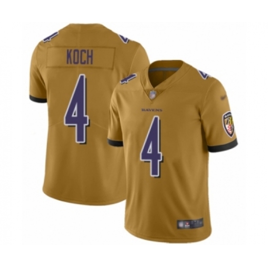 >Men's Baltimore Ravens #4 Sam Koch Limited Gold Inverted Legend Football Jersey
