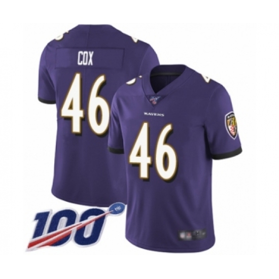 Men's Baltimore Ravens #46 Morgan Cox Purple Team Color Vapor Untouchable Limited Player 100th Season Football Jersey