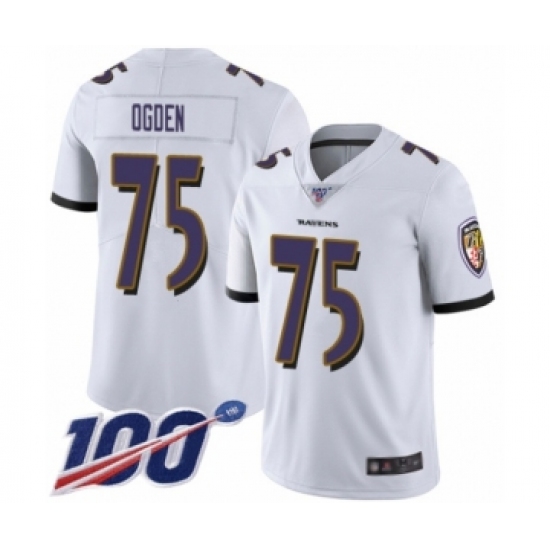 Men's Baltimore Ravens #75 Jonathan Ogden White Vapor Untouchable Limited Player 100th Season Football Jersey