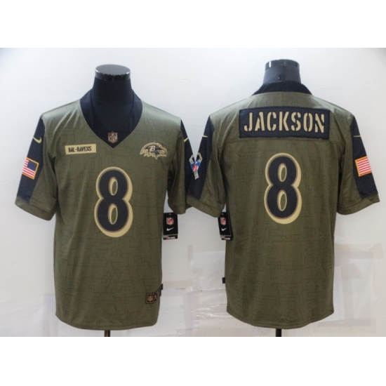 >Men's Baltimore Ravens #8 Lamar Jackson Nike Olive 2021 Salute To Service Limited Player Jersey